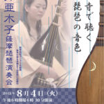 2015年7月17日 / 最終更新日時 : 2021年1月14日 sakurada@yssgrp.co.jp イベント櫻井亜木子 薩摩琵琶演奏会 櫻井亜木子薩摩琵琶演奏会 日時:2015年8月4日(火) 午後6時開場 6時30分開演 会場:臨川寺 本堂 江東区清澄3-4-6 入場料:3,500円 主催:深川資料館通り商店街 協力 臨川寺 #櫻井亜木子 #薩摩琵 […]